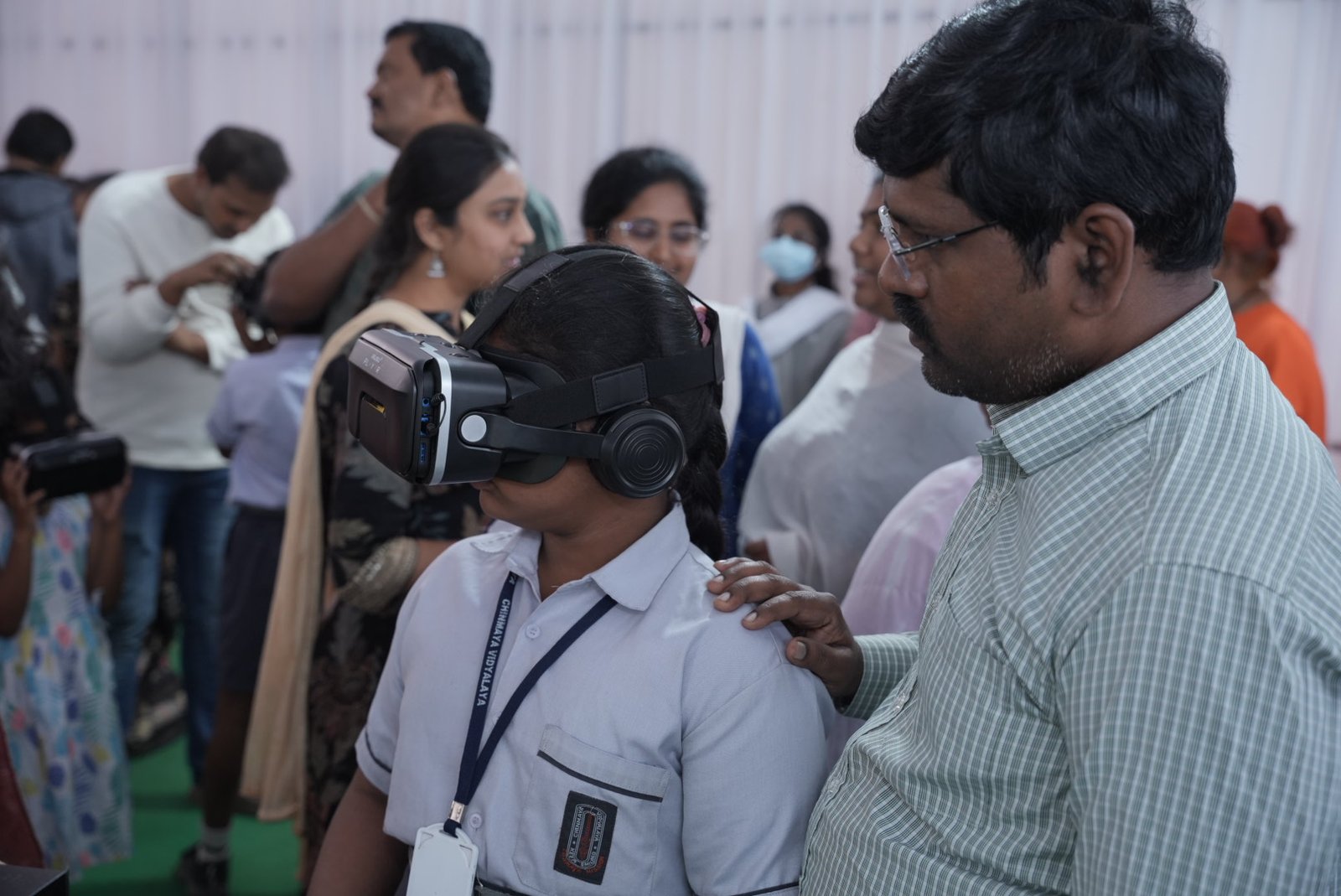 A key highlight of the inauguration was the VR-based Experience Stall, a cutting-edge, new-age technology centre offering visitors an immersive spiritual journey. The stall showcases Pujya Gurudev Swami Chinmayananda’s life and teachings, along with a specially curated Chinmaya Mission 75-year timeline, blending advanced technology with timeless Vedantic wisdom.