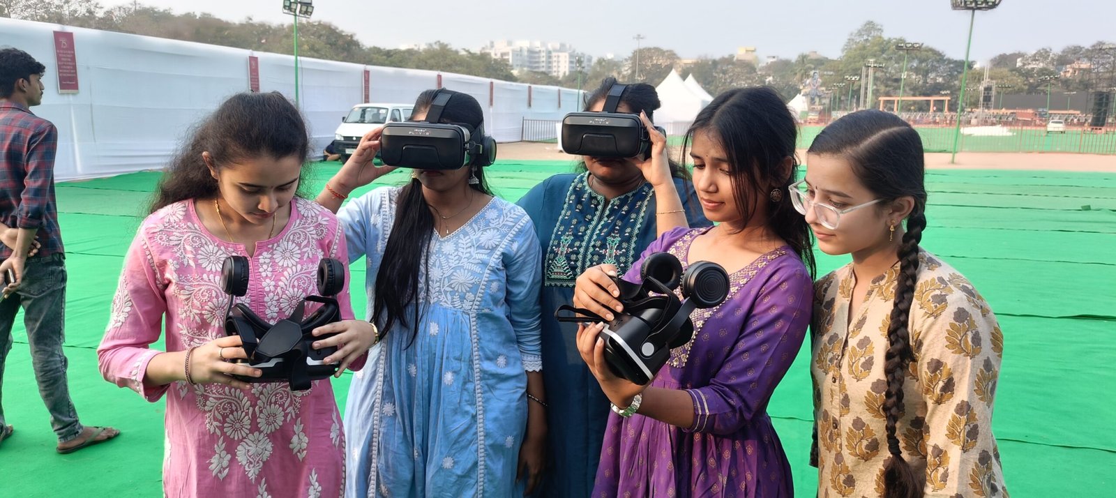 Visitors can experience four major stalls at NTR Stadium across both days of the celebrations, including a VR Experience Stall offering immersive spiritual learning, a Chinmaya Book Stall featuring devotional literature, Vedantic texts, and books for children, a Chinmaya Uphaar Merchandise Stall, and additional stalls highlighting Chinmaya Mission’s grassroots and outreach activities.