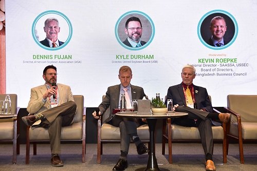 Kyle Durham, Director, United Soybean Board (USB) and Dennis Fujan, Director, American Soybean Association (ASA) in a panel discussion with USSEC’s Regional Director, Kevin Roepke